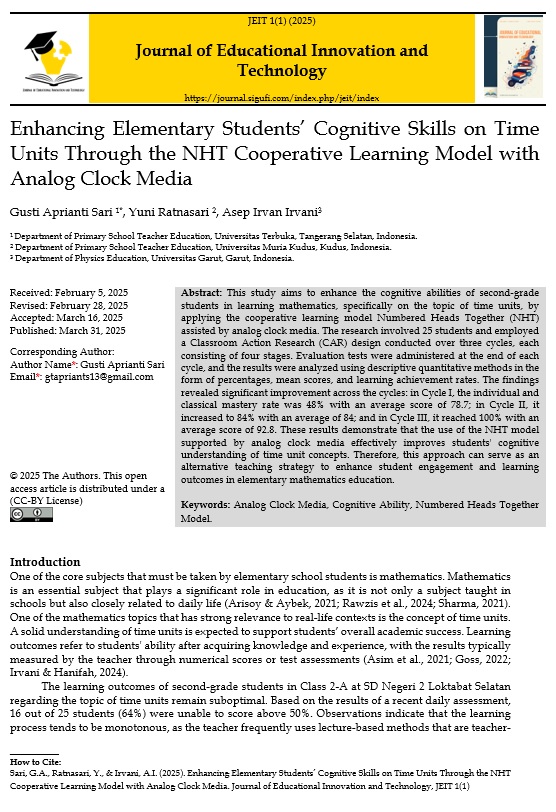 Enhancing Elementary Students’ Cognitive Skills on Time Units Through the NHT Cooperative Learning Model with Analog Clock Media