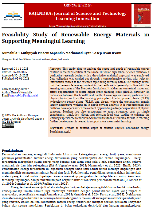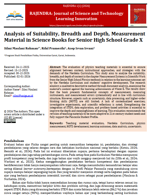 RAJENDRA invites researchers and practitioners to submit quality articles for publication in upcoming issues, with the expectation of making a positive impact on the development of science and technology education, both in Indonesia and globally.